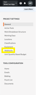 7. Repeat these steps for each project you need to establish a webhook with Guided for Punch List items.