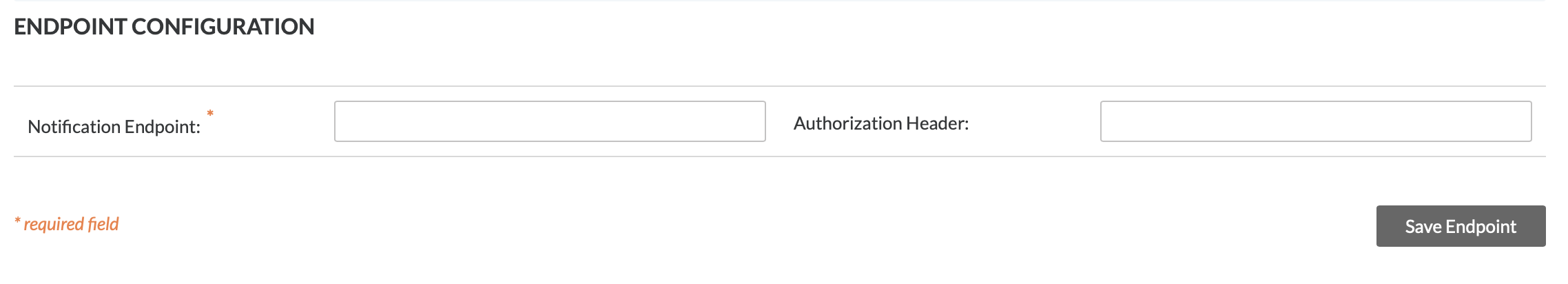 5. On the Webhooks page there is an ENDPOINT CONFIGURATION section (see below). Enter the following information: